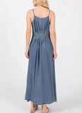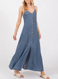 Alessandra Button Front Smocked Back Dress in Denim Blue