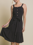 Brooke Button Front Tie Waist Sleeveless Dress