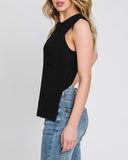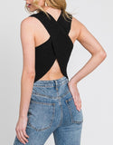 Add this showstopper to your closet and show a little skin! This tank features a cross back style knit with a round neck and longer front!!