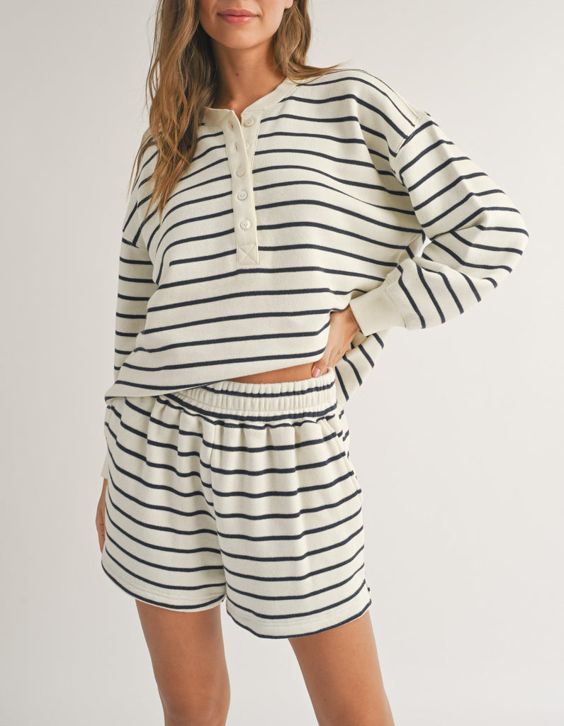 Coffee Run Striped Collared Fuzzy Sweater in Cream