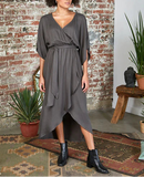 One & Done V-Neck Front Tie Midi Dress (Assorted Colors)