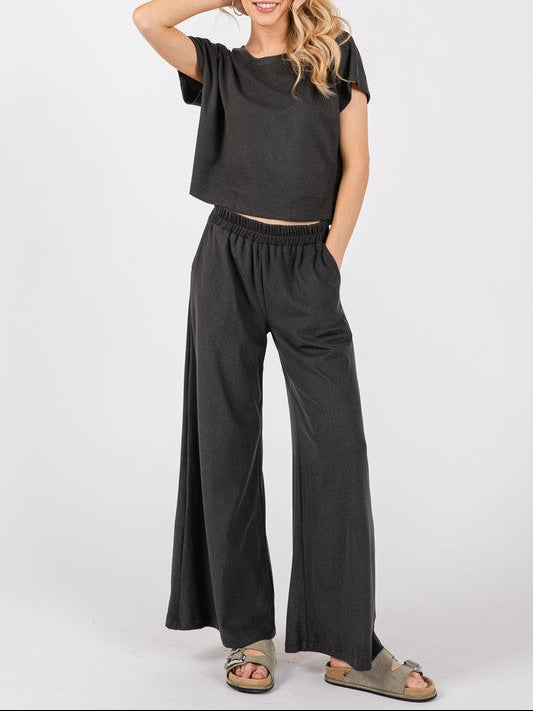 Lyrica Elastic Waist Wide Leg Pant (Assorted Colors)