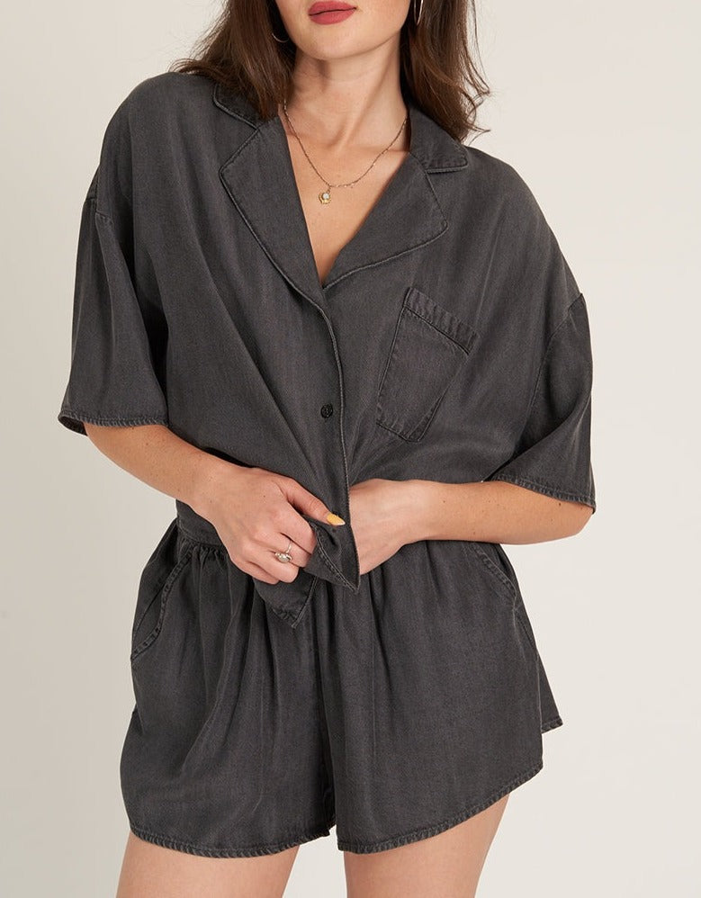 Teagan Relaxed Collar T-Shirt in Charcoal