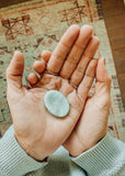 Touch stones have been used in healing and meditation practices by generations to center intentions. Slip this stone into the pocket of your jeans or tuck away in your bag for a moment of manifestation, meditation, or mantra musings while on the go. Hold firmly in your palm for several deep breaths, focusing on the light and energy of the Amazonite to spark a fresh viewpoint.