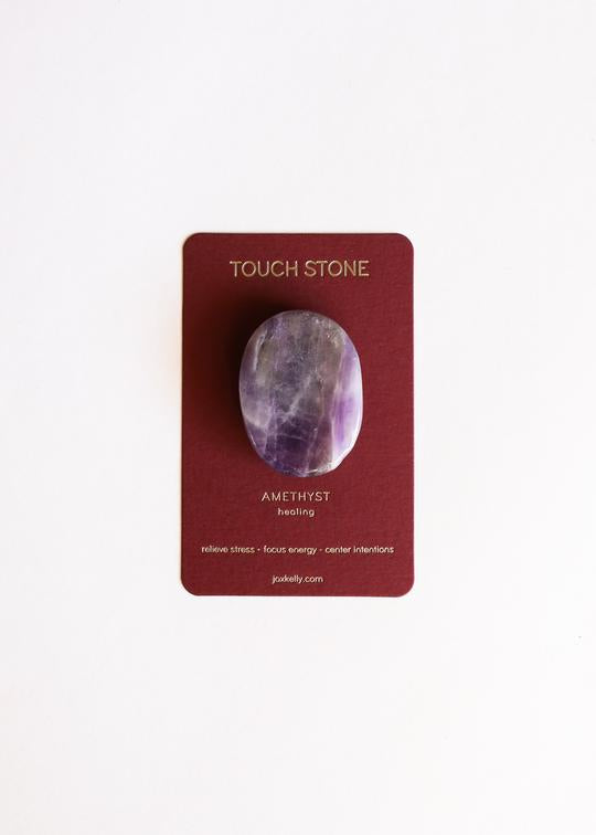 Touch stones have been used in healing and meditation practices by generations to center intentions. Slip this stone into the pocket of your jeans or tuck away in your bag for a moment of manifestation, meditation, or mantra musings while on the go. Hold firmly in your palm for several deep breaths, focusing on the light and energy of the Amethyst to radiate a serene and stress-free atmosphere.