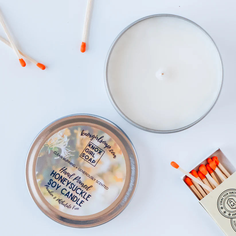 This customer favorite scent is now available in an 8oz soy candle! Hand poured in a reusable tin and free of parabens or phthalates you will love these generously scented candles.