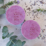 Richly scented with the simple and calming scent of lavender and layered with grounding and herbaceous rosemary and eucalyptus, this soap is an absolute delight to use.