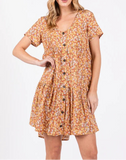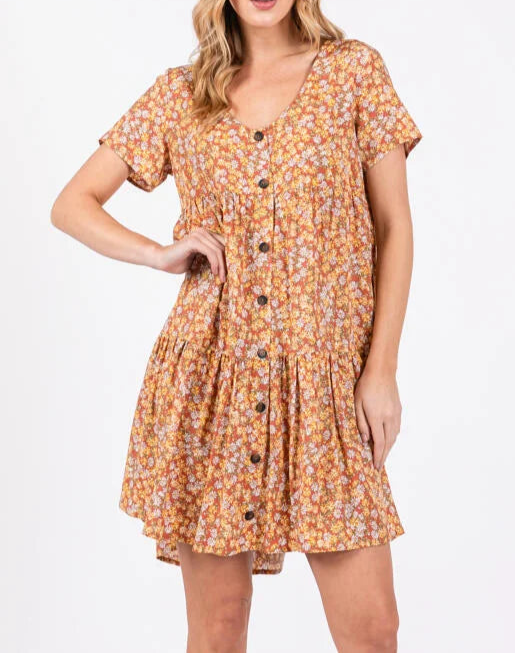 Autumn Bloom Floral Button Down Short Sleeve Mini Dress