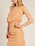 Hazlenut Cinched and Sleeveless Flare Bottom Dress