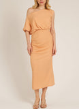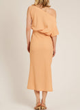 Avery One Shoulder Ruched Bodycon Dress in Coral
