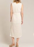 Radiate elegance in the Candace Collared Tie Waist Button Down Dress in off white, a charming ensemble that effortlessly combines sophistication with a touch of whimsy.