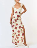 Milkmaid Floral Sweet Heart Slit Midi Dress