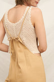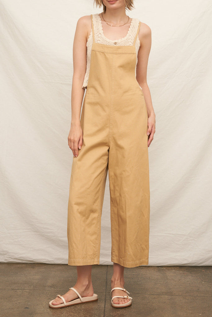Stay effortlessly stylish in this playful tan jumpsuit featuring delicate spaghetti straps and a flirty cross tie back. Its lightweight fabric and relaxed fit make it perfect for sunny days or casual nights out. Easy to dress up or down, this jumpsuit brings a crafty twist to your wardrobe staples with comfortable charm.
