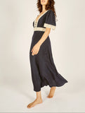 Felicity Silk and Lace Short Sleeve V-Neck Dress in Navy
