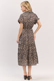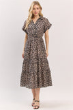 Elevate your everyday look with this chic and versatile midi dress featuring a captivating leopard print. The flattering V-neckline and breezy short sleeves offer a relaxed yet polished feel, while the midi length provides effortless style for any occasion.