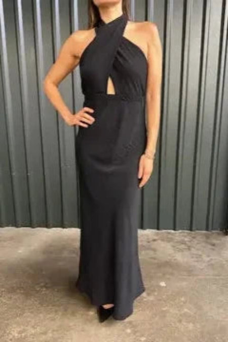 Dress to Impress Sleeveless Satin Halter-Neck Maxi Dress