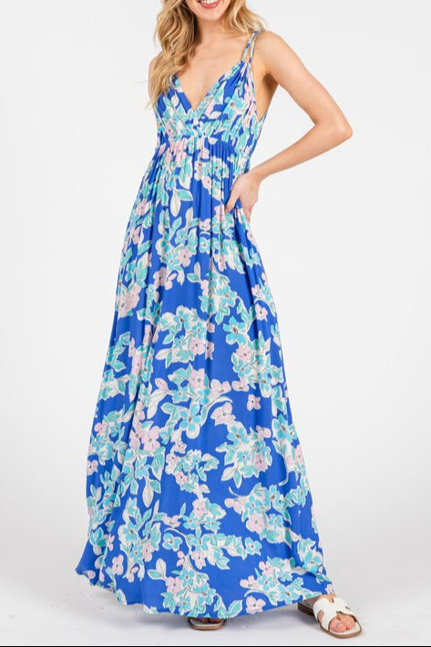 Step into sunshine with the Indigo Bloom maxi dress. Its playful woven floral print and deep V-neck highlight a flirty, feminine vibe, while double spaghetti straps keep things light and breezy. Perfect for twirling through summer days or making a statement at your next gathering, this dress combines comfort and charm effortlessly.