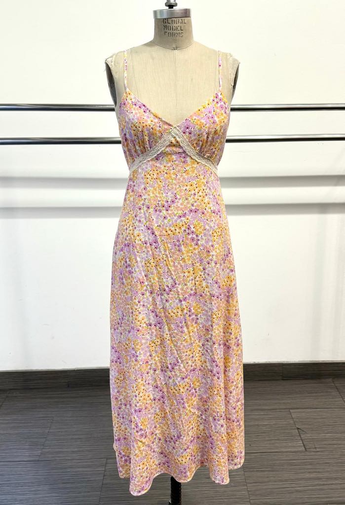 Laced in Pink Floral Maxi Dresscwith Sweet Heart Detail in Coral