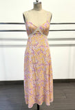 • Laced in Pink Floral Maxi Dresscwith Sweet Heart Detail in Coral