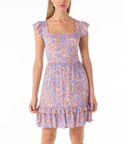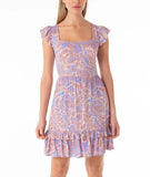 Lilac Dew Sleeveless Paisley Print Ruffle Mini Dress