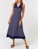 Get ready to set sail in style with our Mariner Chic Maxi Sleeveless Sweater Dress! This dress combines the comfort of a sweater with the elegance of a maxi dress, perfect for any occasion. Stay chic and cozy all day long with this unique and versatile piece. Anchors away!