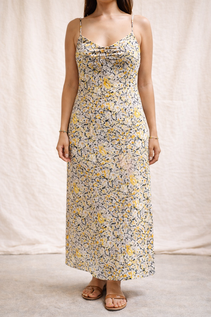 Meet your new go-to for turning heads—the Midnight Marigold Maxi Dress. This luxe satin number features a chic front cinch detail that adds instant dimension to your look. The silky fabric glides against your skin while the maxi length keeps things sophisticated and swoon-worthy. Whether you're dancing the night away or making a grand entrance, this dress delivers elegance with a playful edge. Dress it up with heels or keep it casual with sneakers—either way, you're winning.