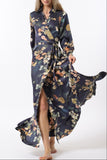 Step into effortless charm with the Moonflower Wrap Maxi Dress. This navy blue beauty features a playful peach floral pattern that adds a fresh pop of color. The long sleeves and tie-front waist create a flattering silhouette, while the wrap style offers adjustable comfort. Perfect for twirling through sunny days or cozy evenings, this maxi dress blends elegance with a fun, flirty vibe.