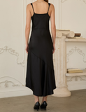 Turn heads in the Noir Lace Asymmetrical Maxi Dress, featuring delicate black lace trim and flirty spaghetti straps. Its unique asymmetrical hem adds a playful twist to classic elegance, perfect for dancing the night away or making a stunning entrance at any event. Effortlessly chic and comfortable, this maxi dress is your go-to for a bold, stylish statement.