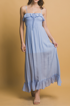 Step into effortless charm with the Picnic Hour Smocked Dress. This playful maxi features a flattering smocked bodice that hugs your silhouette and a fun tie-front detail adding a flirty touch. Perfect for sunny days or casual evenings, it combines comfort and style for your next adventure.