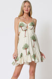 Palm Paradise thin adjustable strap elastic back waisted mini dress