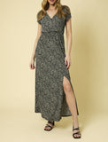 Rising Sun Big Leaf Maxi Dress with Slit
