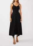 Step out in style with the Stargazer Button Down Dress, a playful black maxi that combines comfort and flair. Featuring a flattering V-neck and ruched detailing, this dress adds a touch of charm to your look. The button-down front lets you customize your style, making it perfect for day-to-night adventures. Embrace effortless elegance with this versatile wardrobe favorite.