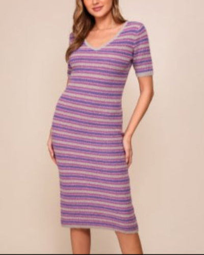 Sugarberry Short Sleeve Striped Sweater Dress