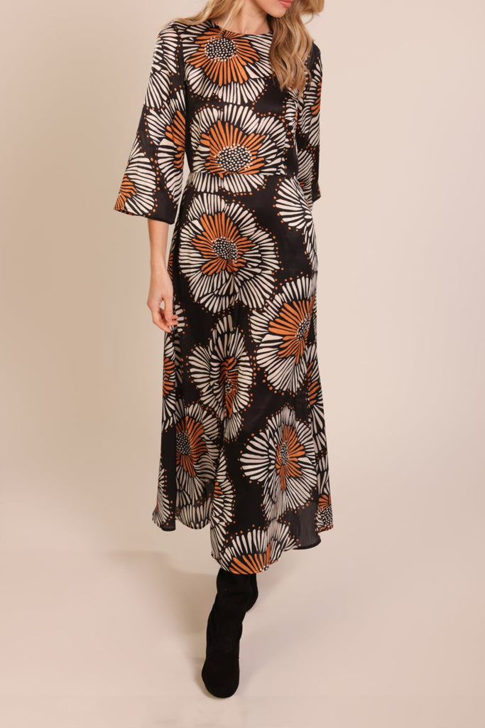 Step into sunshine with the Sunlit Monarch maxi dress. Featuring playful 3/4 sleeves and a flowing silhouette, it’s adorned with a vibrant floral pattern inspired by the shimmering colors of monarch butterflies. Perfect for twirling through garden parties or sunny strolls, this dress brings a cheerful flutter to your wardrobe. Lightweight and breezy, it lets you dance freely wherever the day takes you.