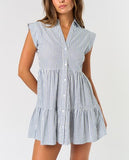 Tidal Stripes Sleeveless Tiered Mini Dress in Navy/Ivory