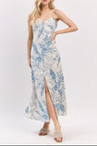 Rising Sun Big Leaf Maxi Dress with Slit