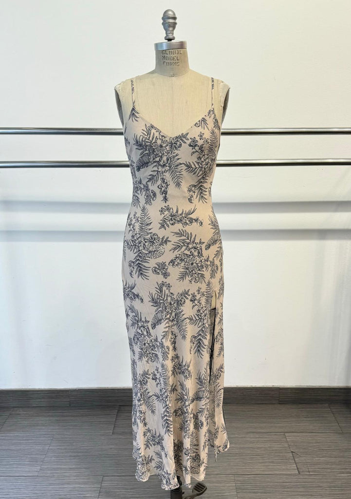 Tropicana V-Neck Maxi Dress with High Slit in Neutral