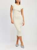 Vienna Open Back Ribbed Midi Dress in Ivory