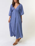 Unleash your free spirit with our blue Woven Spirit Long Puff Sleeve Dress. Lightweight and airy, this dress boasts a playful and carefree vibe. Embrace the flowy silhouette and add a touch of whimsy to your wardrobe.
