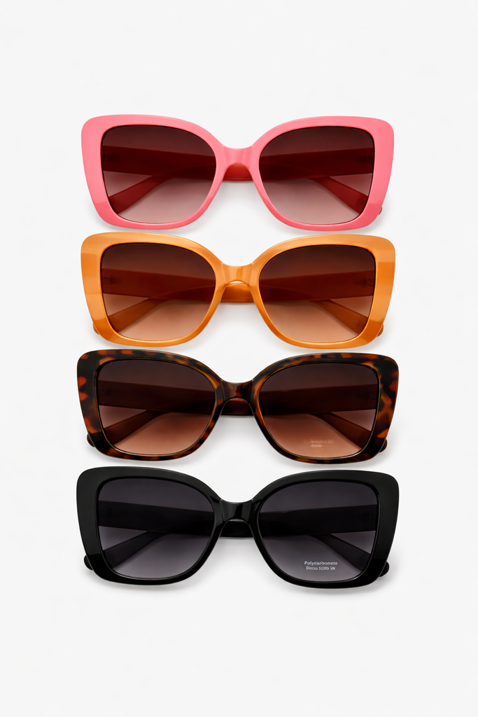 Make a confident statement with the Bold Horizon Oversized Sunglasses. Designed with a dramatic square silhouette and thick frames, these sunnies bring a perfect blend of retro flair and modern edge. Crafted with lightweight polycarbonate lenses that block 100% of UV rays, they offer both comfort and protection. Available in rich neutrals and playful pops of color, these sunglasses are the ultimate finishing touch for sunny days, weekend outings, or elevated everyday looks.