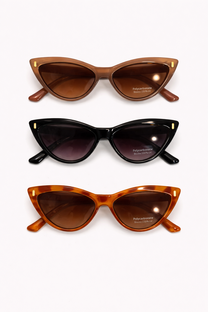 Turn heads with the Bombshell Cat-Eye Sunglasses. Featuring a bold, sculpted cat-eye silhouette, these sunnies bring instant glam with a confident edge. Designed with glossy frames and lightweight polycarbonate lenses that block 100% of UV rays, they’re as functional as they are stylish. Available in classic neutrals and timeless tortoise, the Bombshell Cat-Eye is the ultimate statement accessory for sunny days and standout looks.
