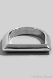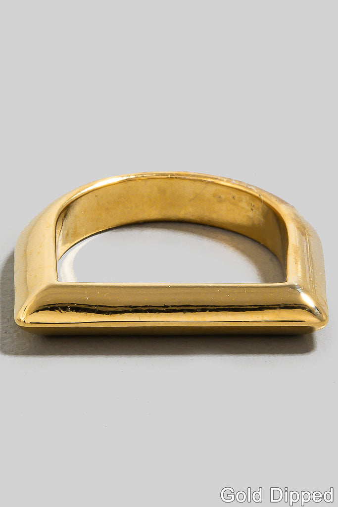 This unique ring offers a "D" shaped band bringing a cool flare to your ring stack.