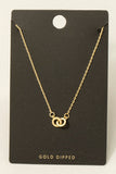 Gold interlocking circles necklace with one rhinestone circle and one smooth circle.