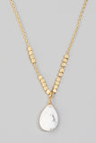 This stunning necklace features a teardrop pendant paired with a bead marble stone, creating a chic and sophisticated accessory. Its unique design adds a touch of elegance to any outfit, making it perfect for both casual and formal occasions. Wear it solo for a minimalist look or layer it with other pieces for a bolder statement.
