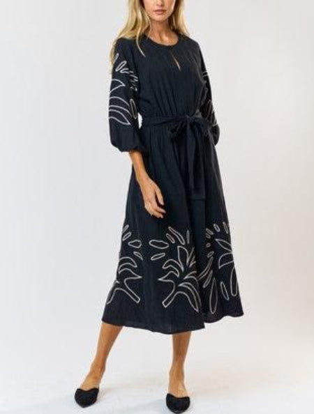 Embrace a touch of whimsy with this enchanting black dress, beautifully adorned with intricate embroidery. With its long sleeves and flowing silhouette, it brings a graceful vibe to any occasion. Slip into effortless elegance and let every detail tell a story!