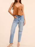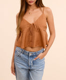 Cinnamon Sleeveless Tie Front Woven Top in Camel