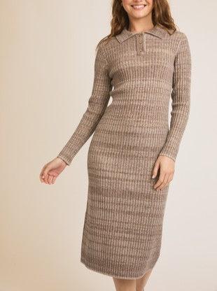 Cozy up in this sweater dress! With long sleeves, a chic collared neckline, and a flattering snug fit, it’s perfect for sipping hot cocoa or a night out. Soft, stylish, and oh-so-warm, it’s your go-to for effortless winter vibes!
