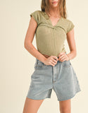 Dakota Twist Front Knit Textured Crop Top in Olive