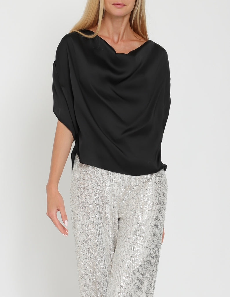 Dark Hour Cowl Neck Satin Blouse in Black