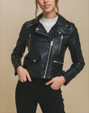 Good Days Vintage Inspired Cropped Vegan Leather Jacket with Red Lining